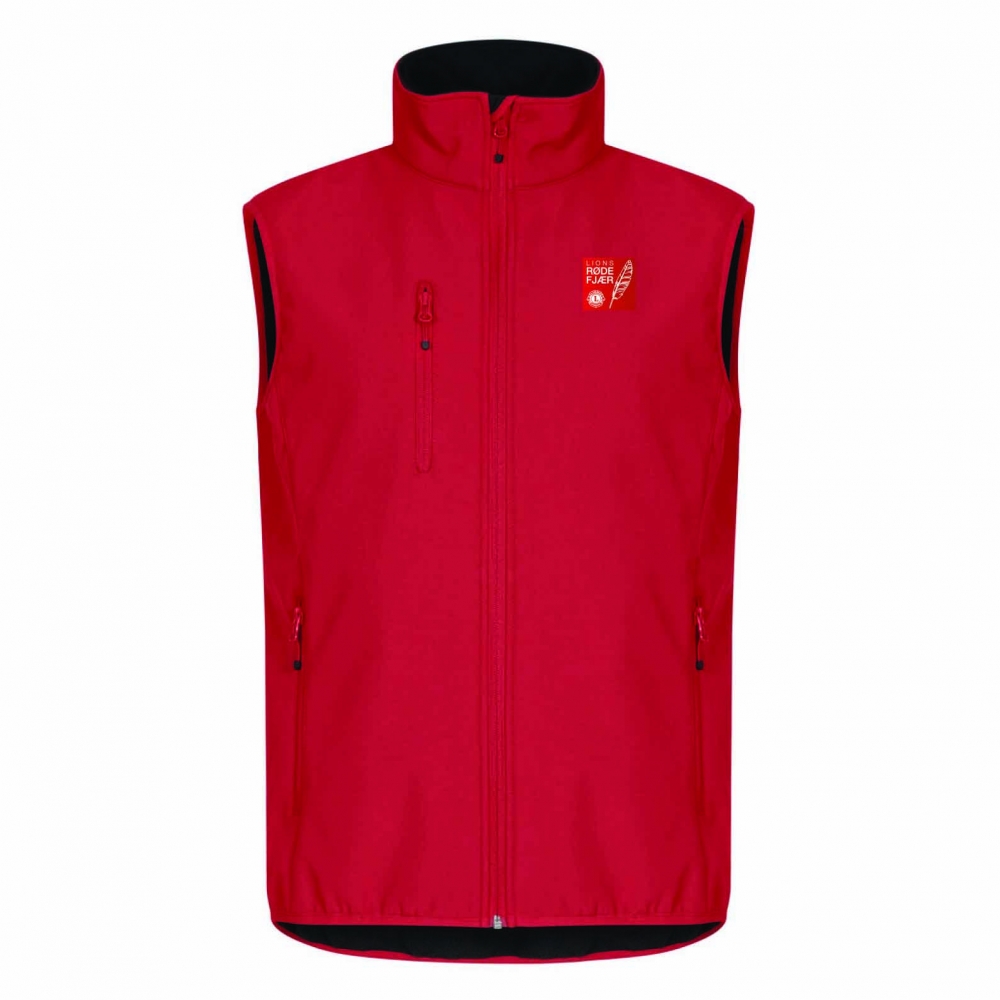 3-lags softshellvest laget av resirkulert polyester med fleece på innsiden. To frontlommer med glidelås og en brystlomme med glidelås. Elastisk bånd i nederkant og i ermehullene. Farge sort med Lions røde fjær logo trykket på venstre bryst.